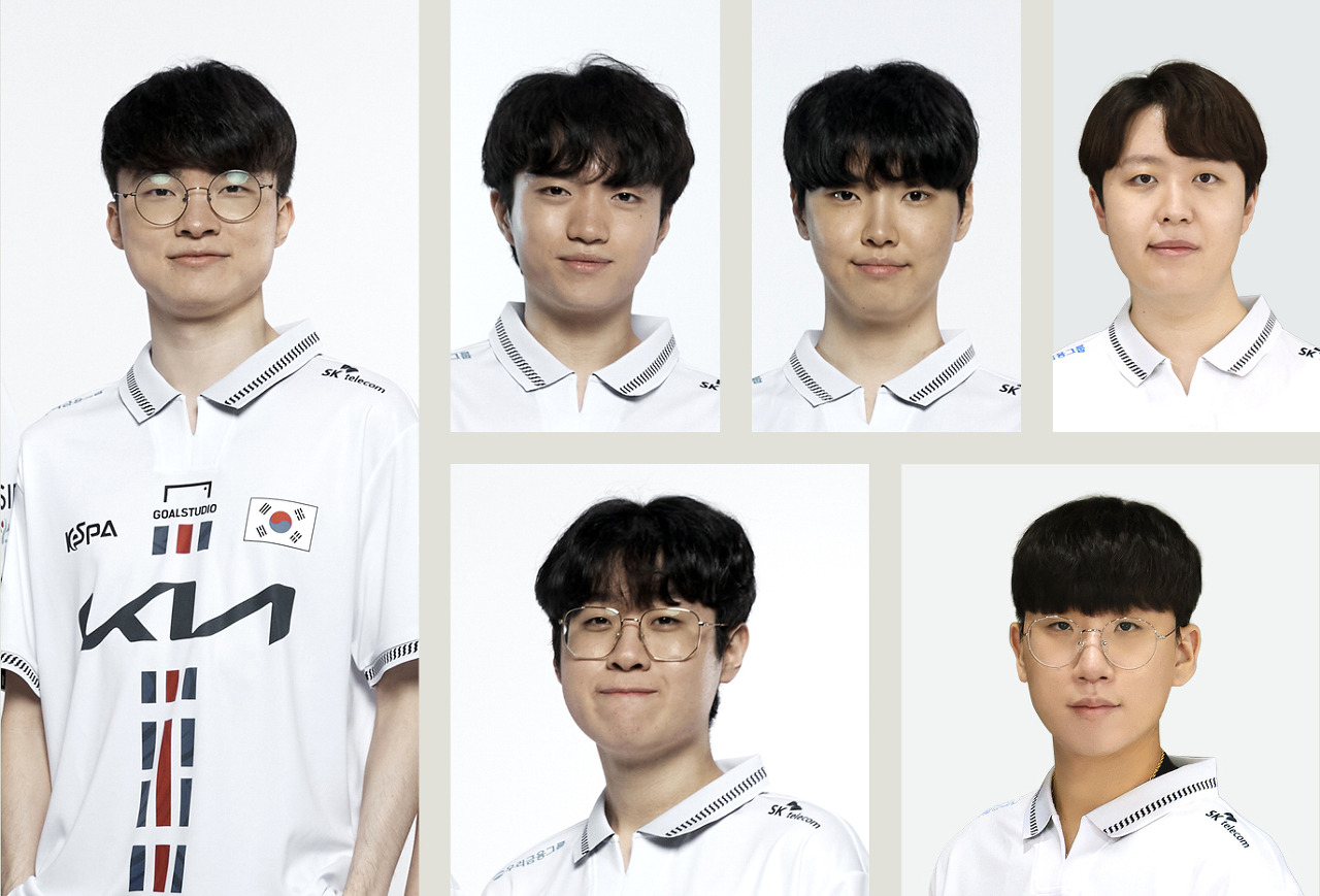 '페이커' 이상혁, '쵸비' 정지훈, '카나비' 서지훈, '룰러' 박재혁, '케리아' 류민석, '제우스' 최우제